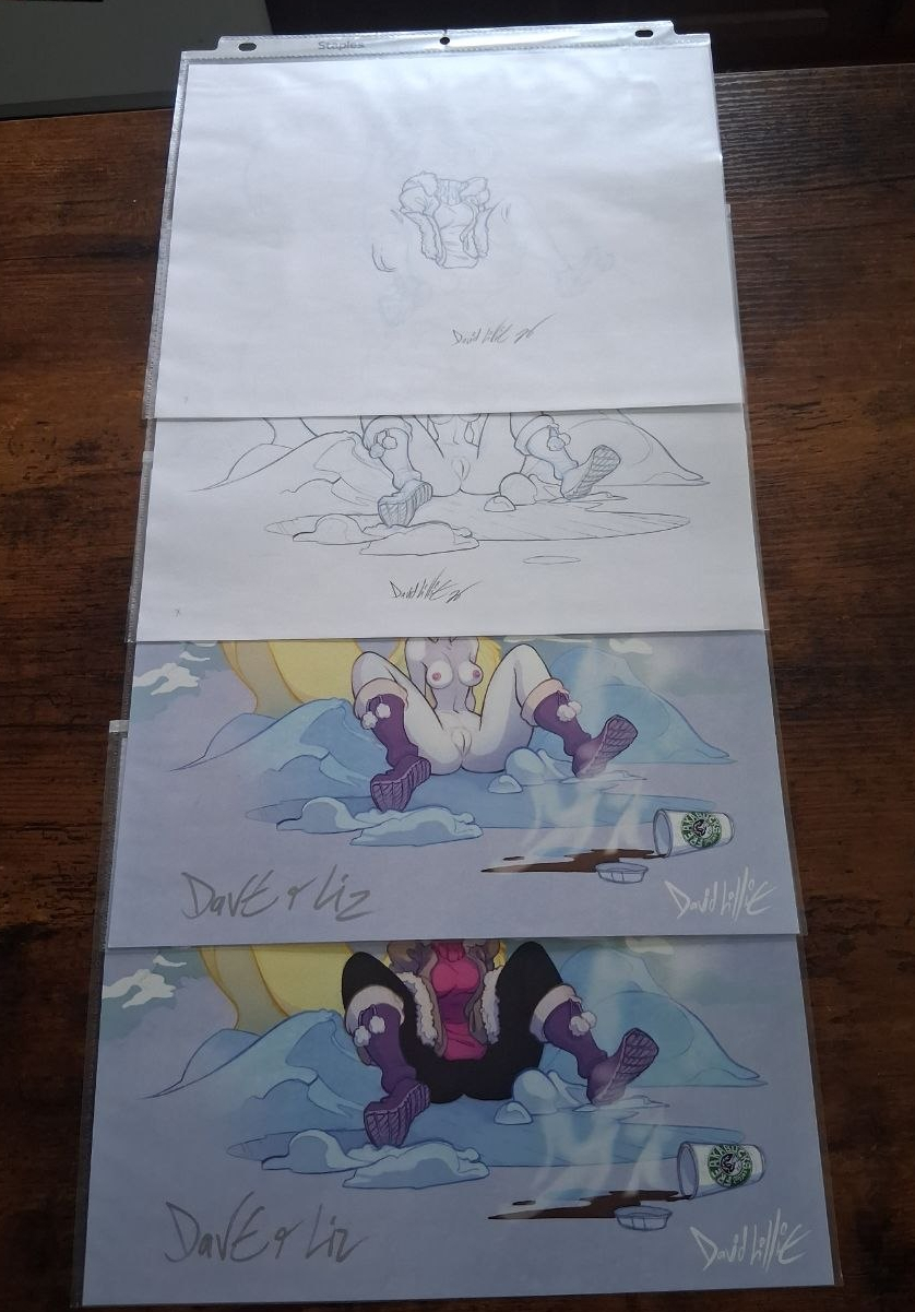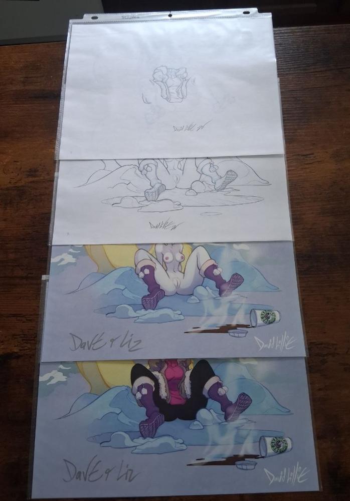 Art is lovingly drawn in non-photo-blue and traditional pencil on 8.5 x 11 printer paper, and comes in a protective plastic sleeve. Art arrives insured in a box.